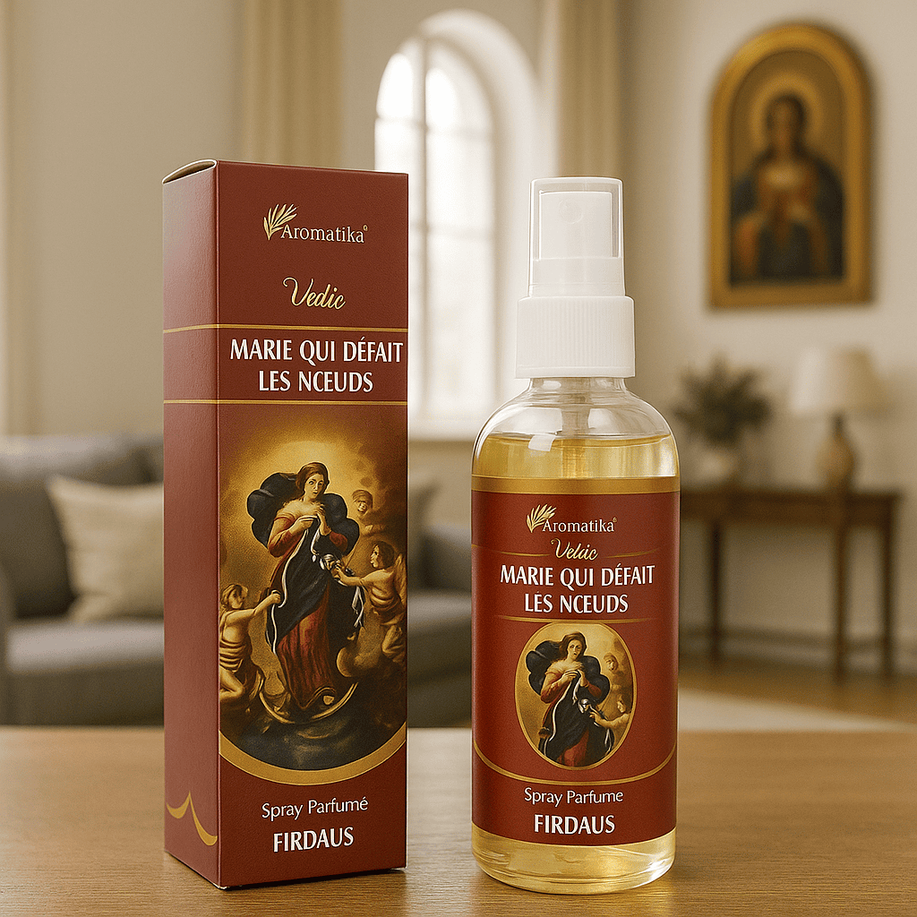 Invite peace, faith and deliverance into your home with this natural room fragrance dedicated to Mary who unties knots , a symbol of protection and spiritual liberation.